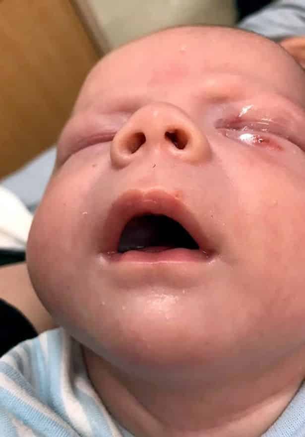 Noah Tindle, a 4-week-old baby was left fighting for his life when he contracted herpes in his eye after being kissed at a christening in the U.K.